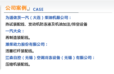 大连江森自动化有限公司,以非标自动化装配线的规划设计、研发、生产制造为公司发展方向,先后为汽车发动机装配领域提供了一系列的设备(气密检测机、螺栓拧紧机、多种产品的压装机、生产部装线、整体生产装配线等),近期又拓展了压缩机装配线领域上的业务,为压缩机厂家设计制造的优质的自动化装配设备、适应时代发展的柔性装配线,提高压缩机行业的生产效率,实现精益生产,装配的标准化和自动化,从而减轻劳动强度,提高产量,提高压缩机装配质量,整体实现信息化跟踪和管理,为用户提供满意的交钥匙工程。
